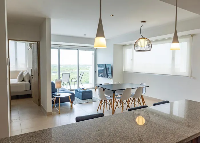 Quest'appartamento di 119 m², Ocean Breeze, Cancun Sanctuary - Hivenb, si trova a soli 6 minuti a piedi dal Malecón Américas Cancún e ha un centro fitness. Quest'appartamento ha anche una terrazza che si affaccia sul giardino.